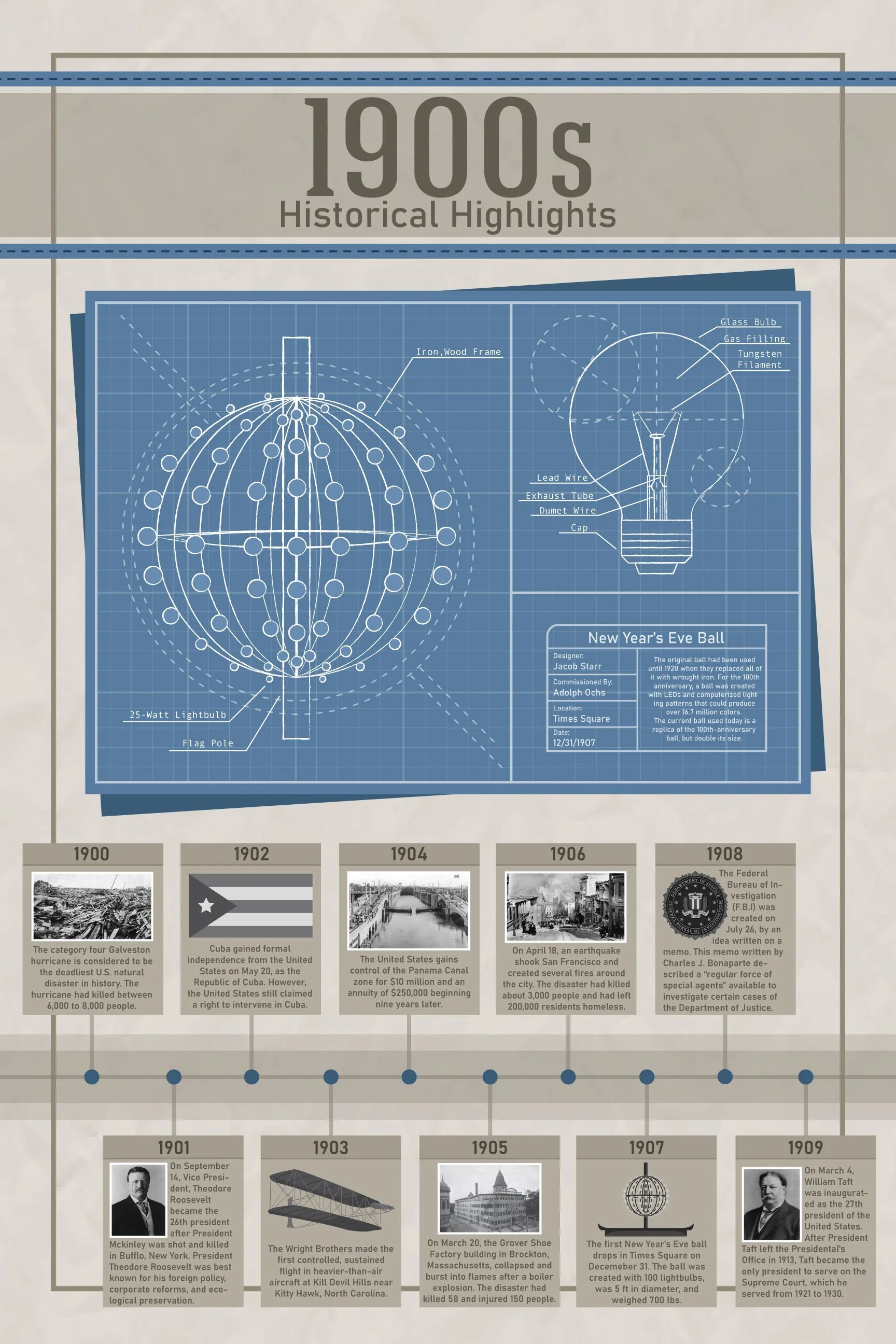 For my capstone project, I undertook the task of creating a series of ten movie-size posters that captured the history of the United States from the 1900s to the 1990s. Each poster is meticulously themed to evoke the mood and aesthetic of each decade and consists of a total of a hundred carefully curated facts, ten facts per decade. These facts are a blend of significant events, groundbreaking inventions, presidential terms, the creation of noteworthy companies, and other intriguing and important information.